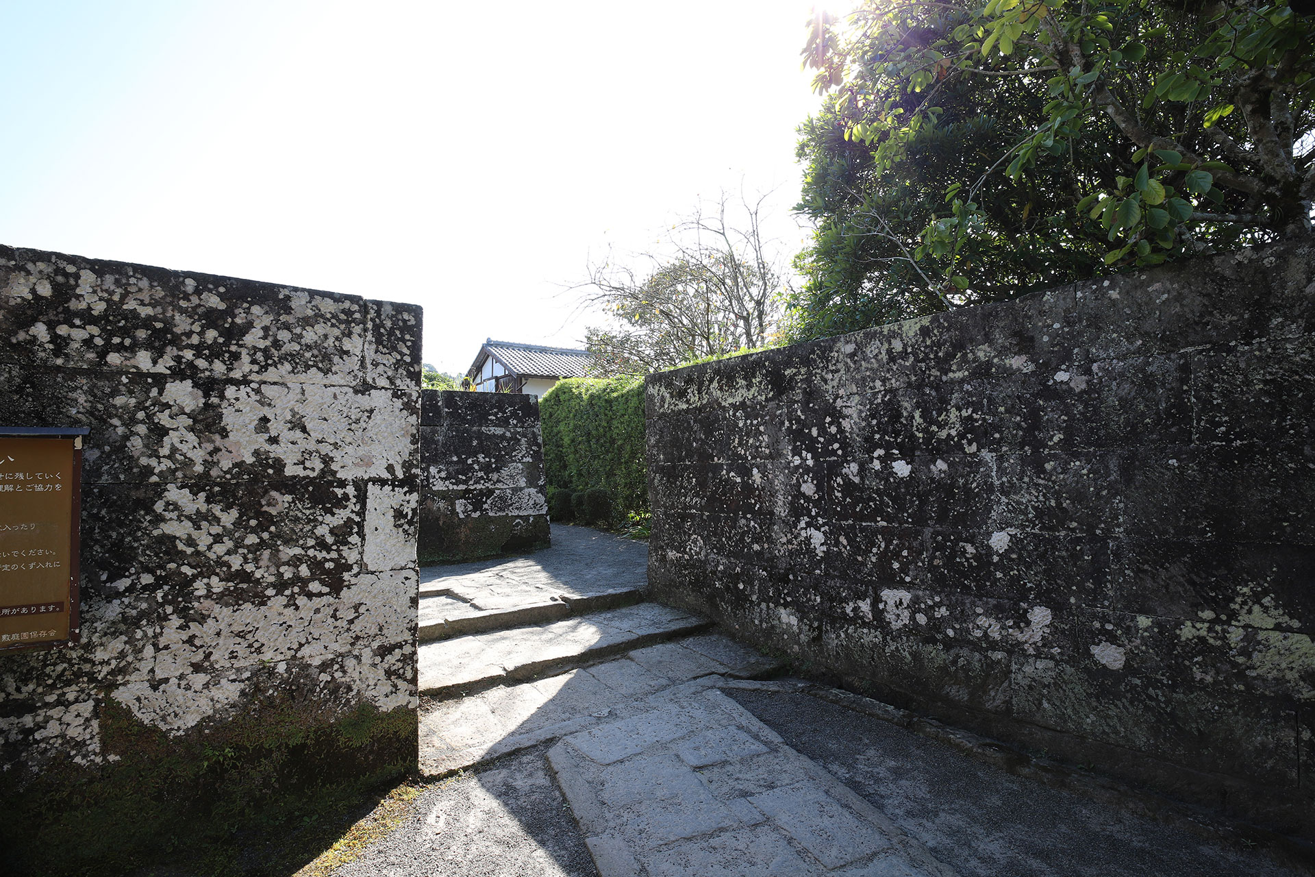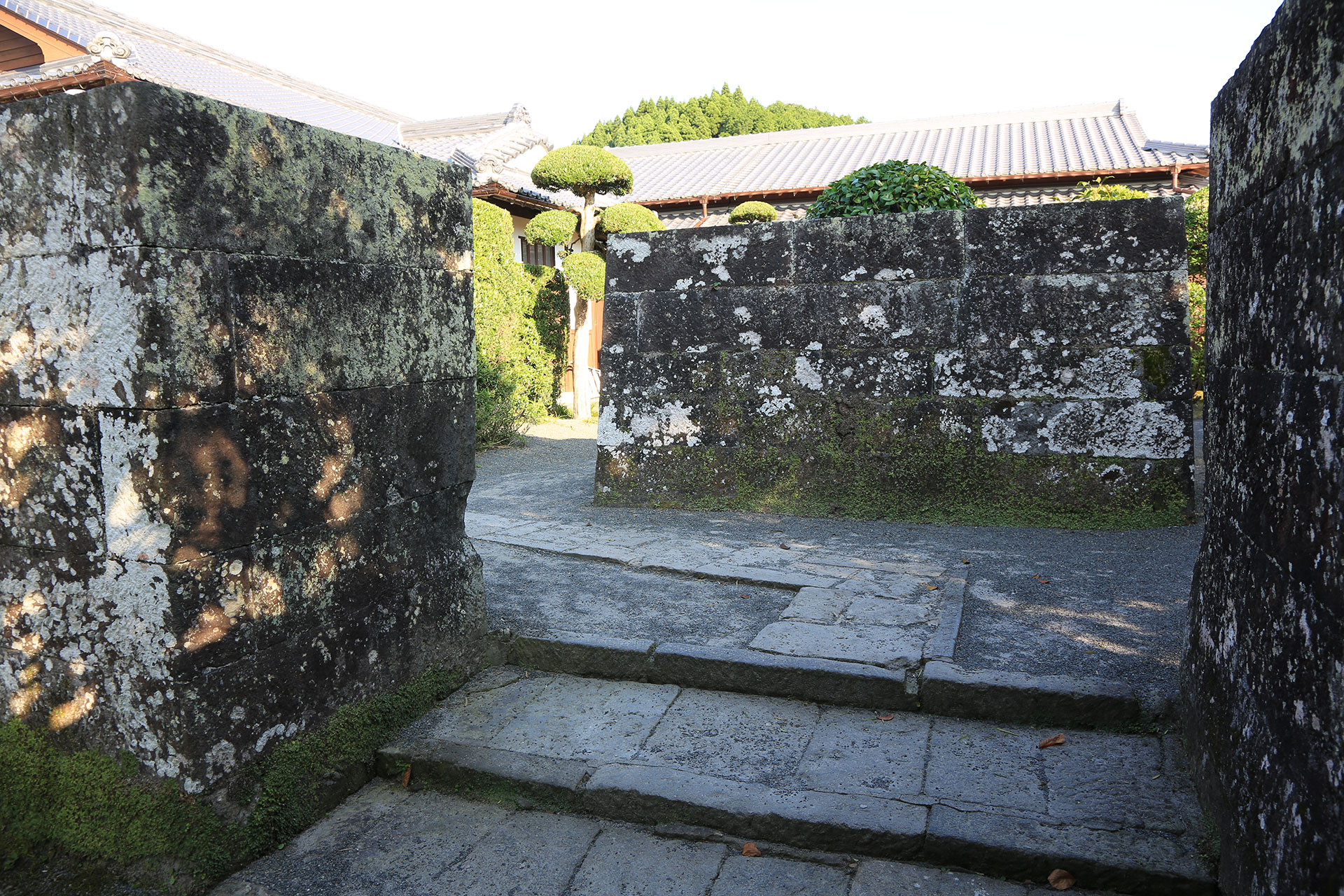 門をくぐると切石の目隠しにつき当たりますが、これは屏風岩と呼ばれ、防衛を兼ねた造りで江戸時代中期の武家屋敷の風格を備えています。