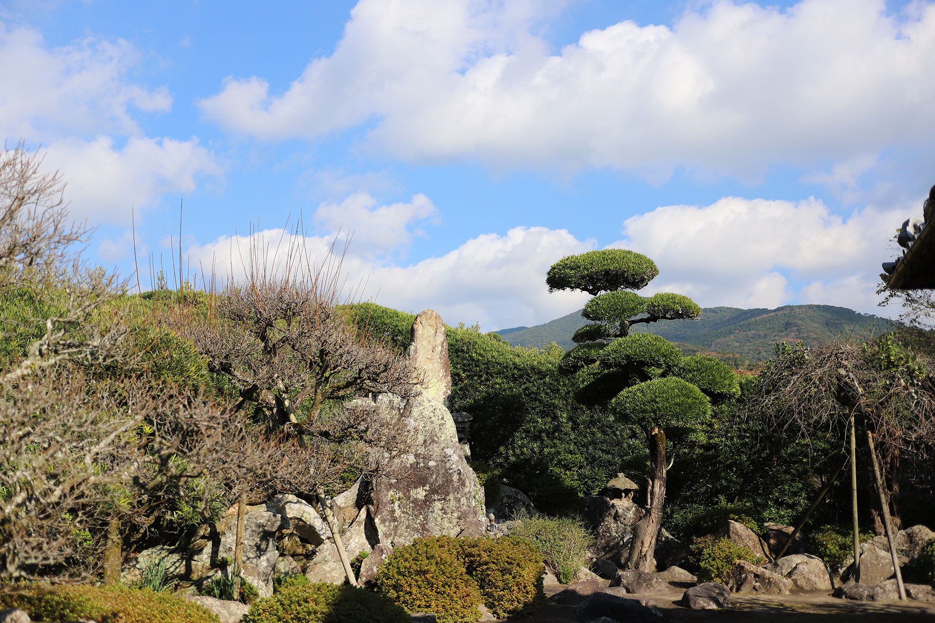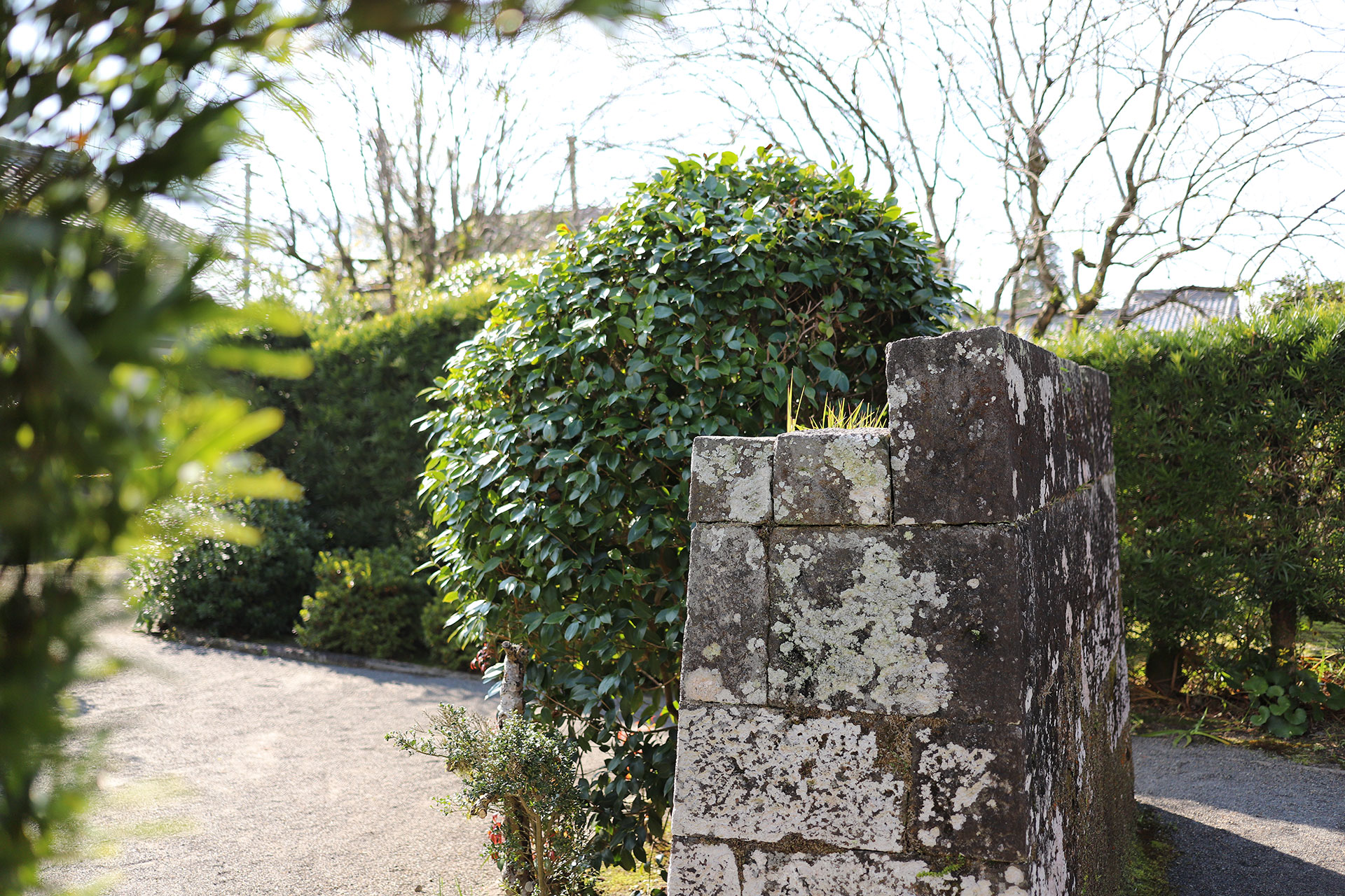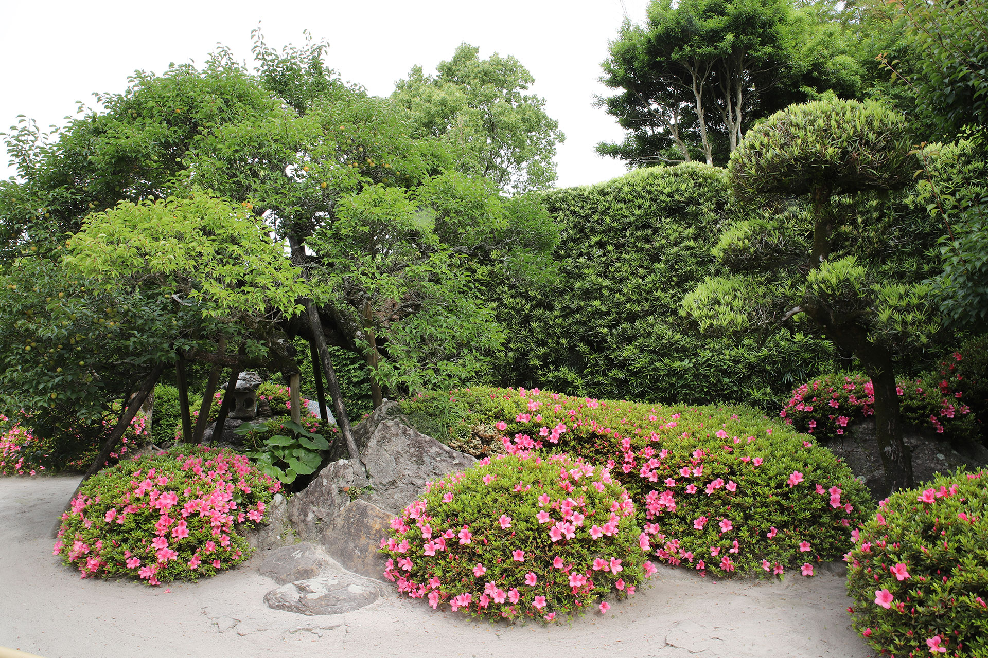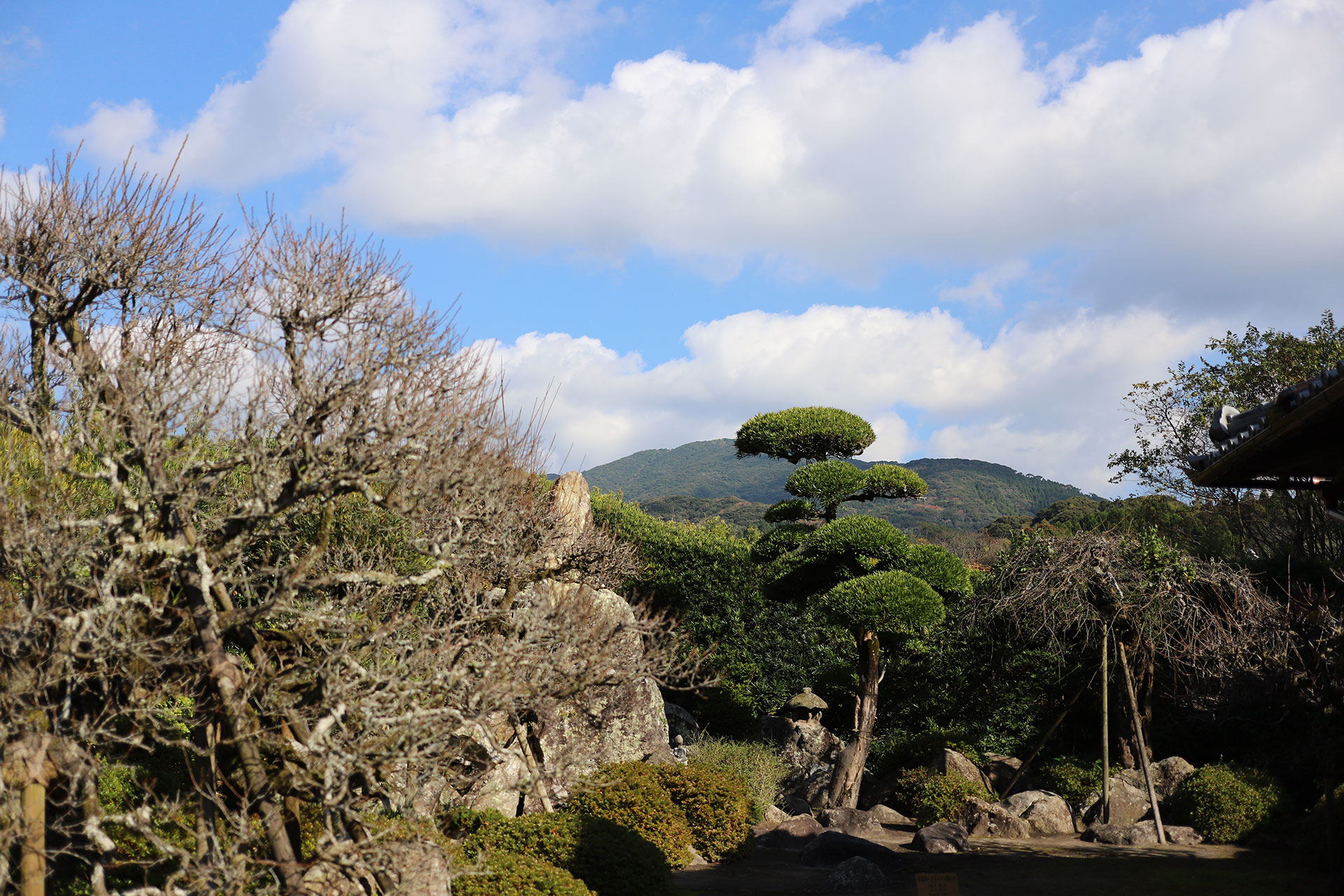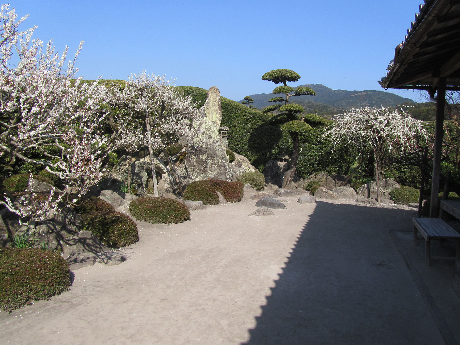 梅・イヌマキを主木とし、これを交互に配している手法は他の園に見られないものです。