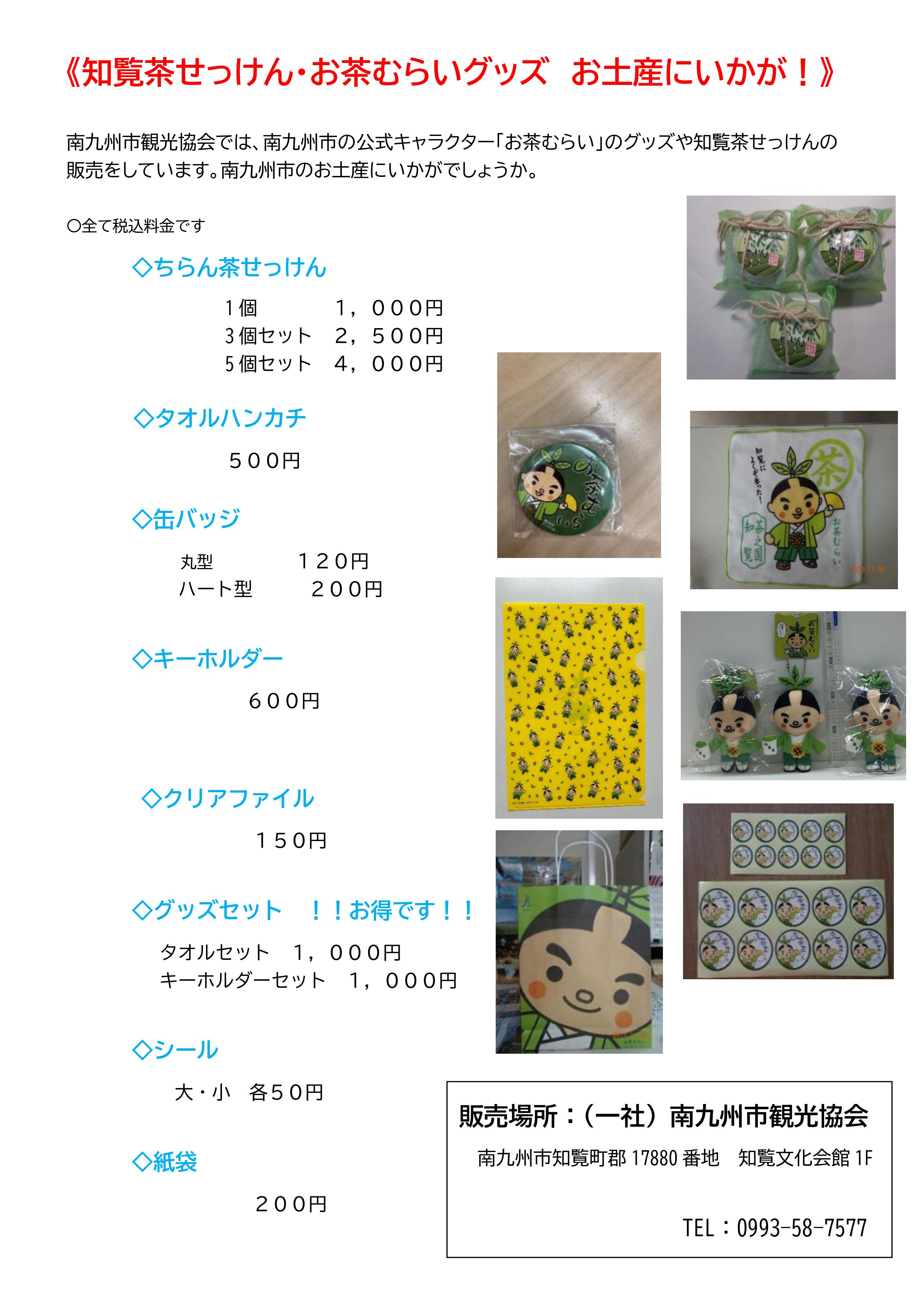 「お茶むらい」グッズは、南九州市のお土産やお子様・お孫様へのプレゼントで大変好評です。