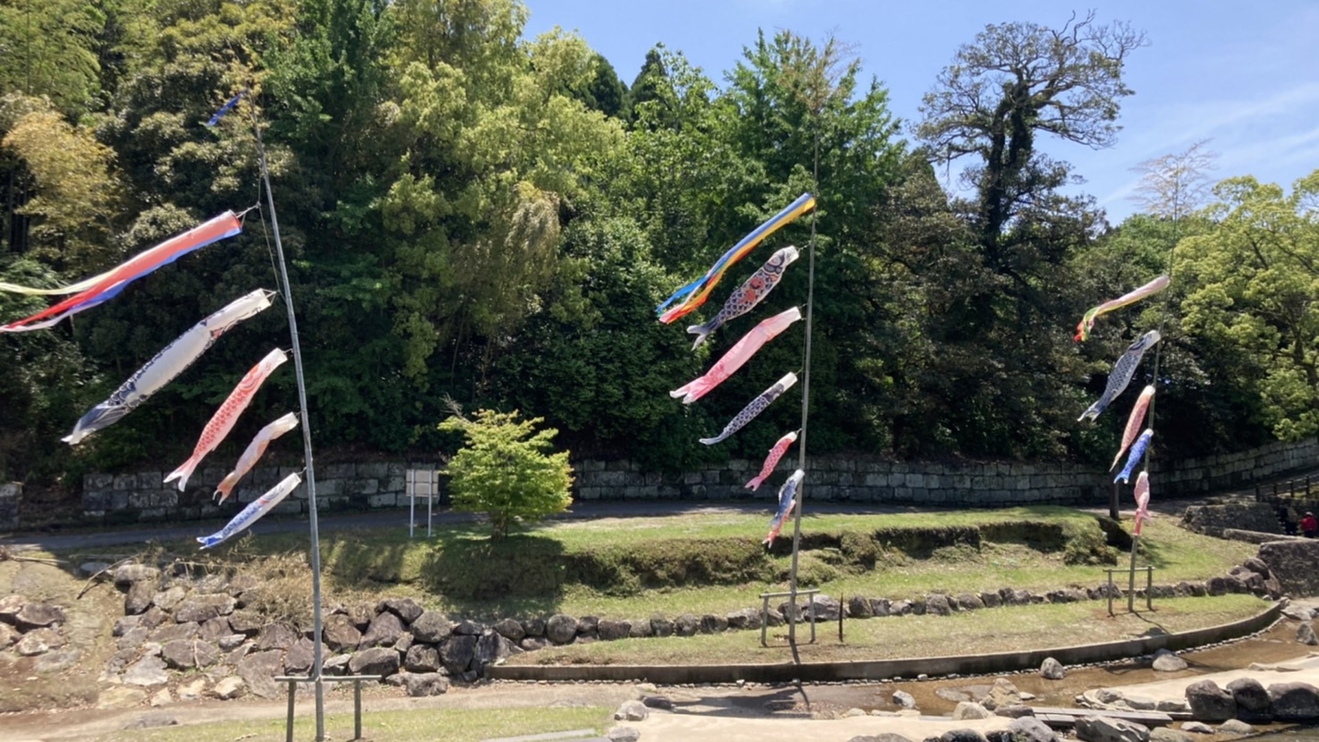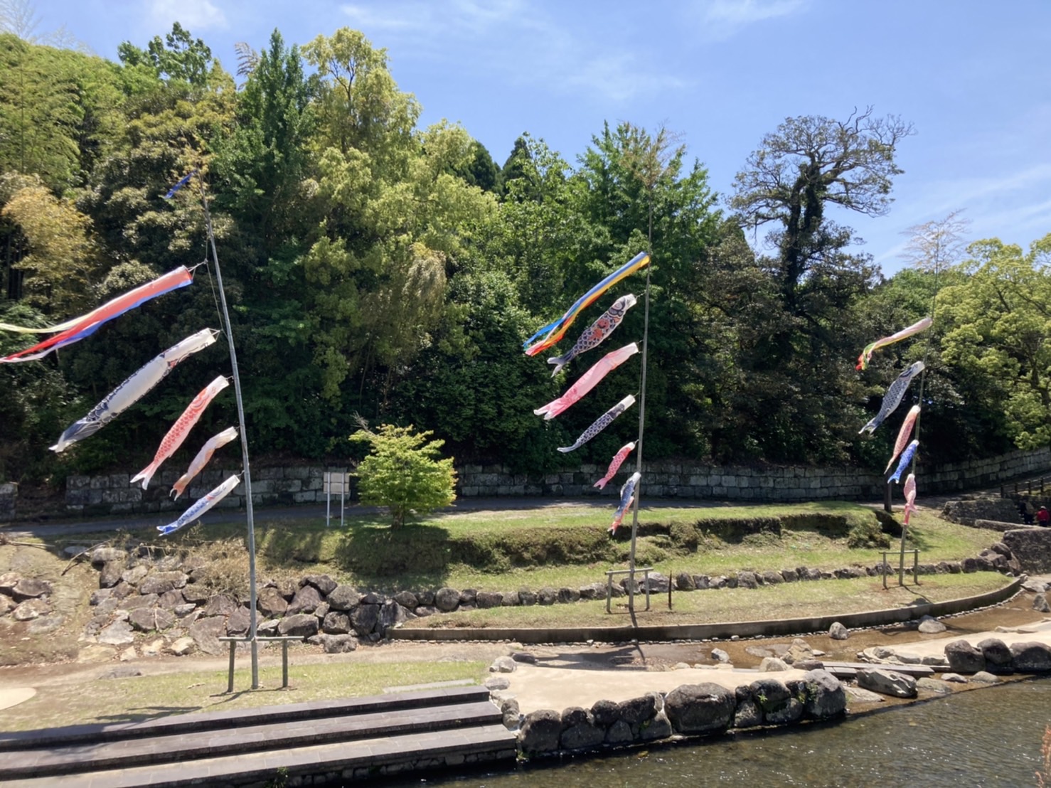 知覧武家屋敷庭園群近くにある矢櫃橋周辺の河原では、こいのぼりが皆様をお迎えいたします!!