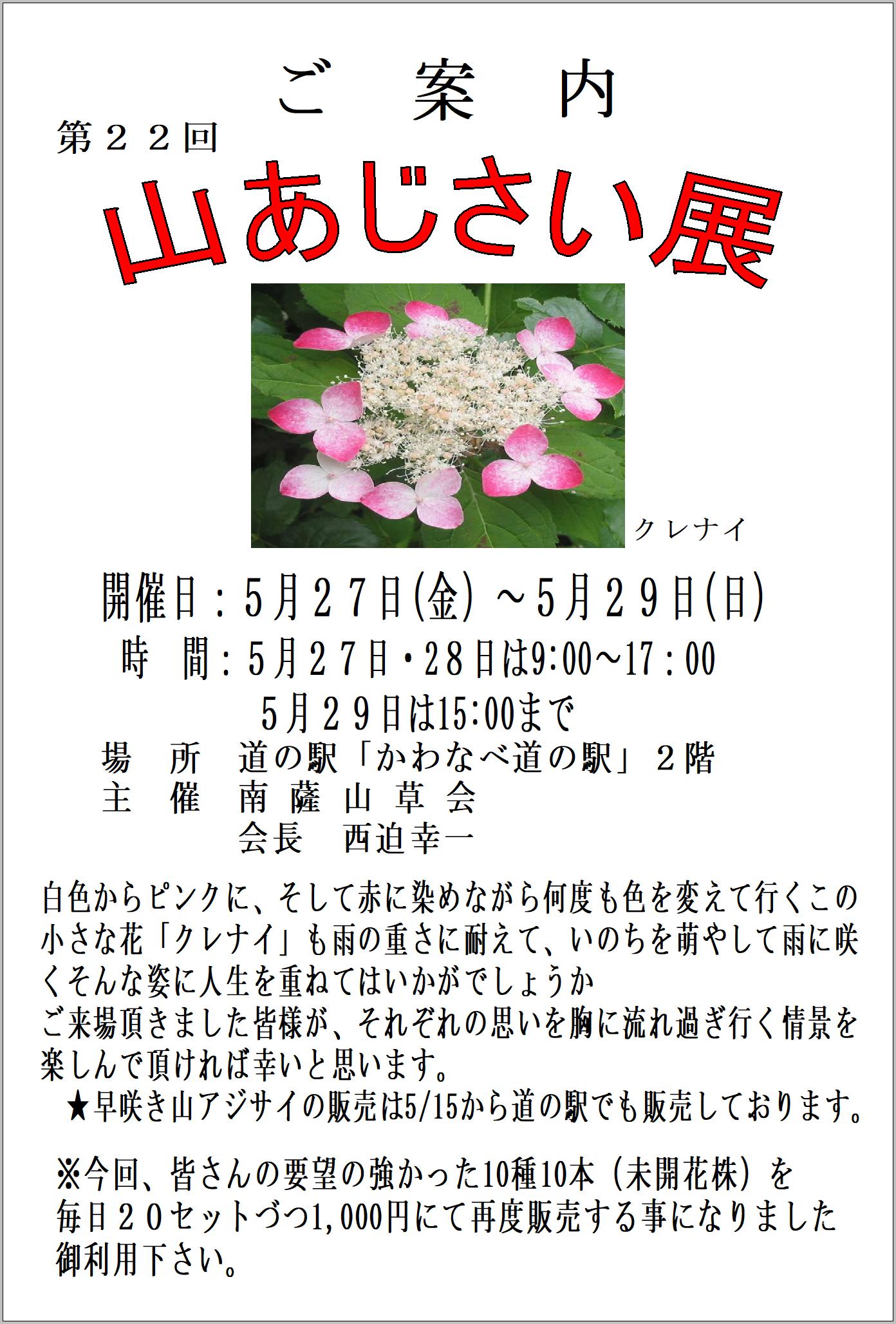 | 「第19回知覧山あじさい展」開催のお知らせ |