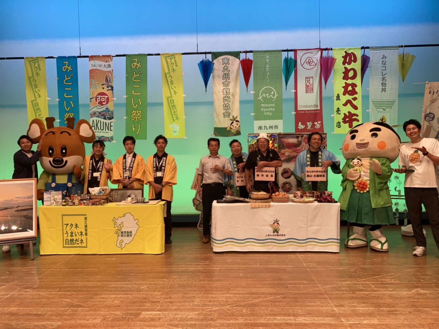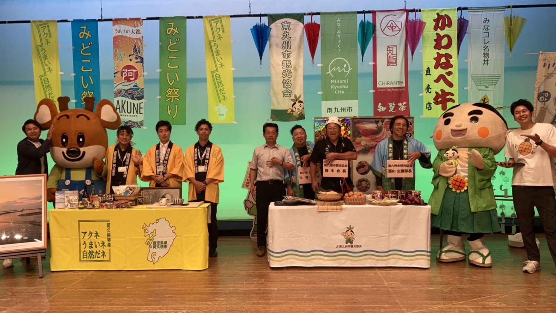 「グルメ」「観光」「祭り」の3ジャンルで、南九州市と阿久根市でPR対決を行いました。双方各テーマで熱戦を繰り広げ、みごと南九州市が勝利しました!!