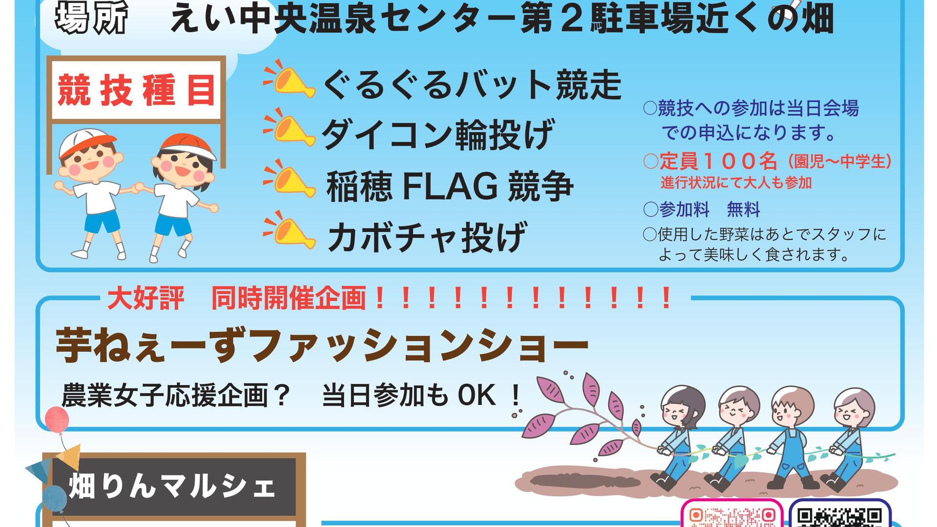 南九州市頴娃町の畑の中で競技をしたり、作業着ファッションショーをしたりととっても面白いイベントです!!