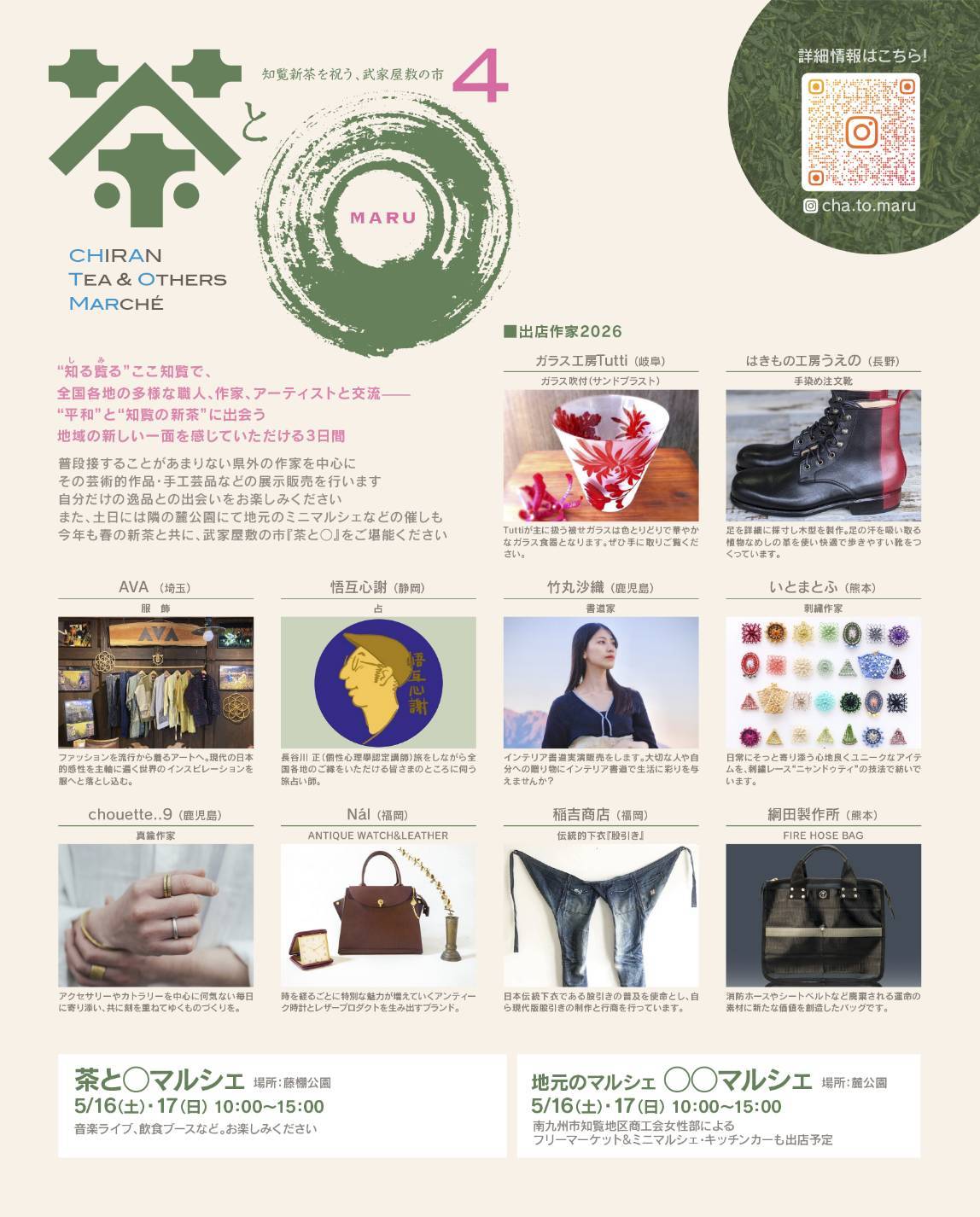 作品・手工芸品などの展示販売を行うイベント「茶と〇(まる)4」が開催されます。