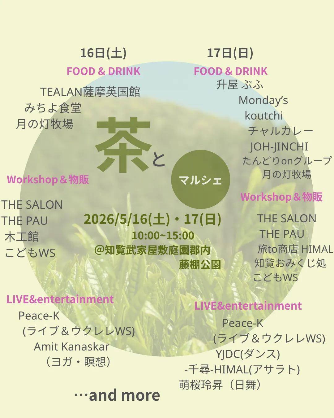 土日には麓公園にて茶と〇マルシェも開催予定なので合わせてお楽しみいただけます。