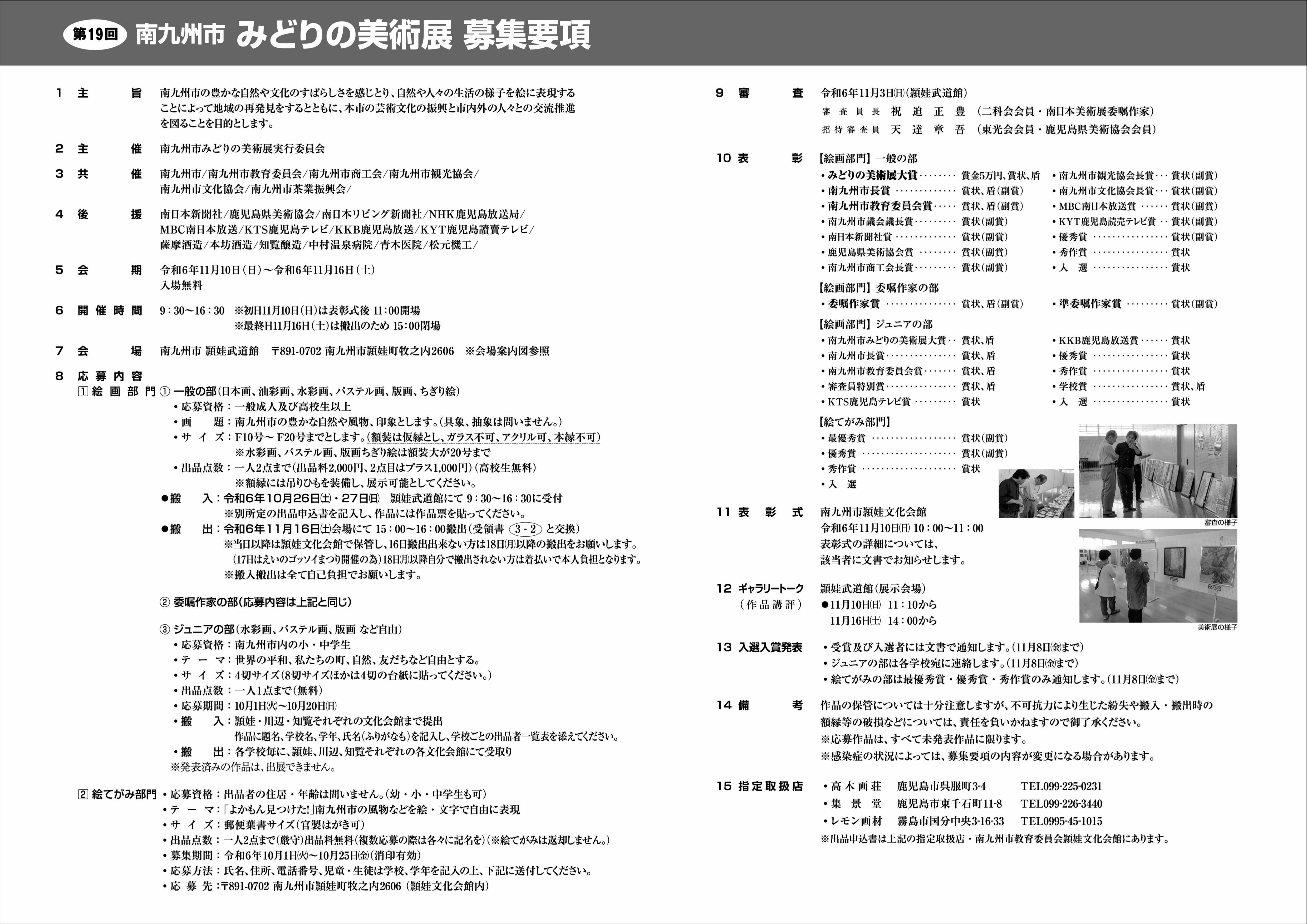 | 第19回南九州市みどりの美術展 作品募集のご案内 |