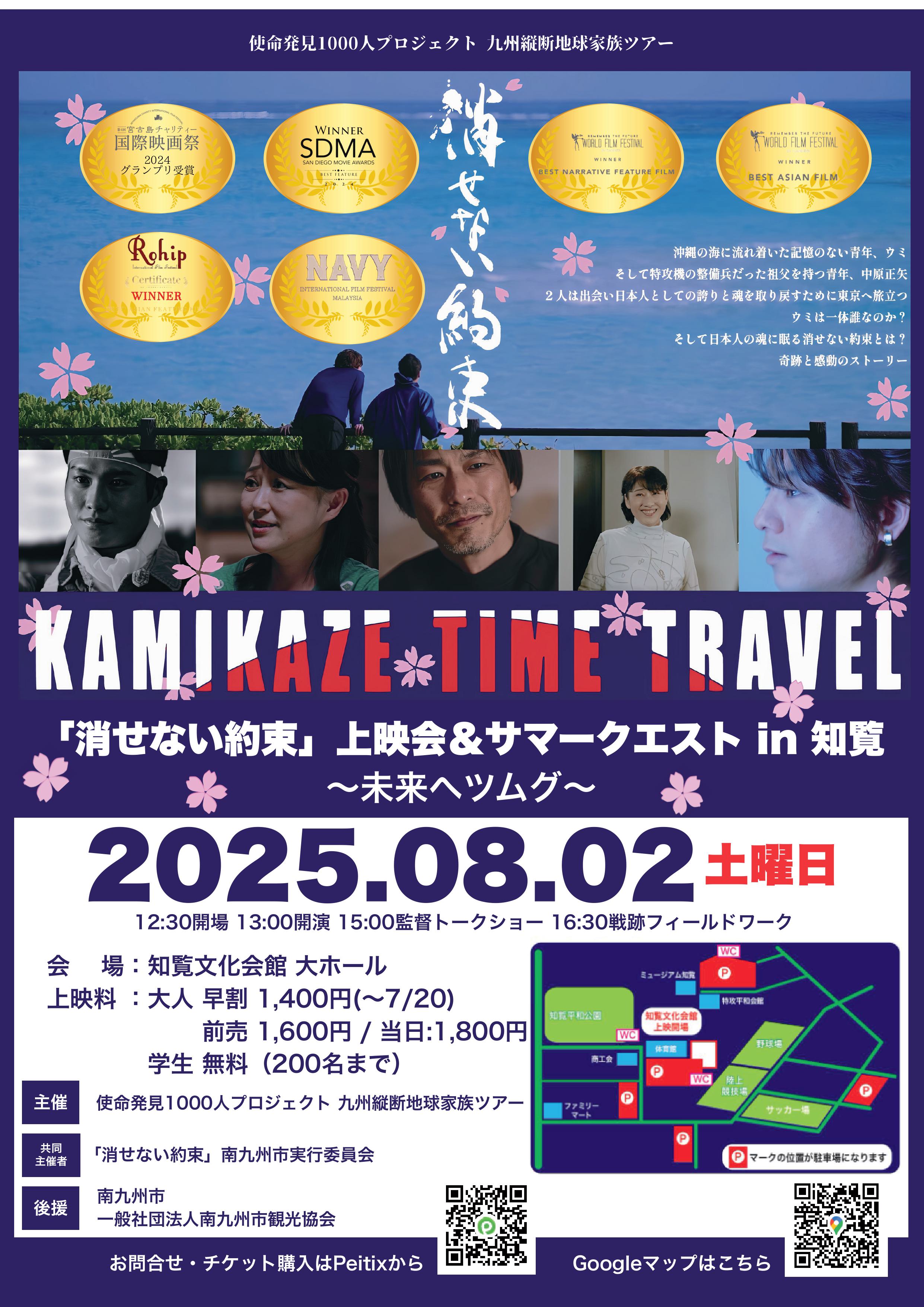 今回で2回目となる、映画「消せない約束 KAMIKAZE TIME TRAVEL」の上映会が知覧文化会館で開催されます。