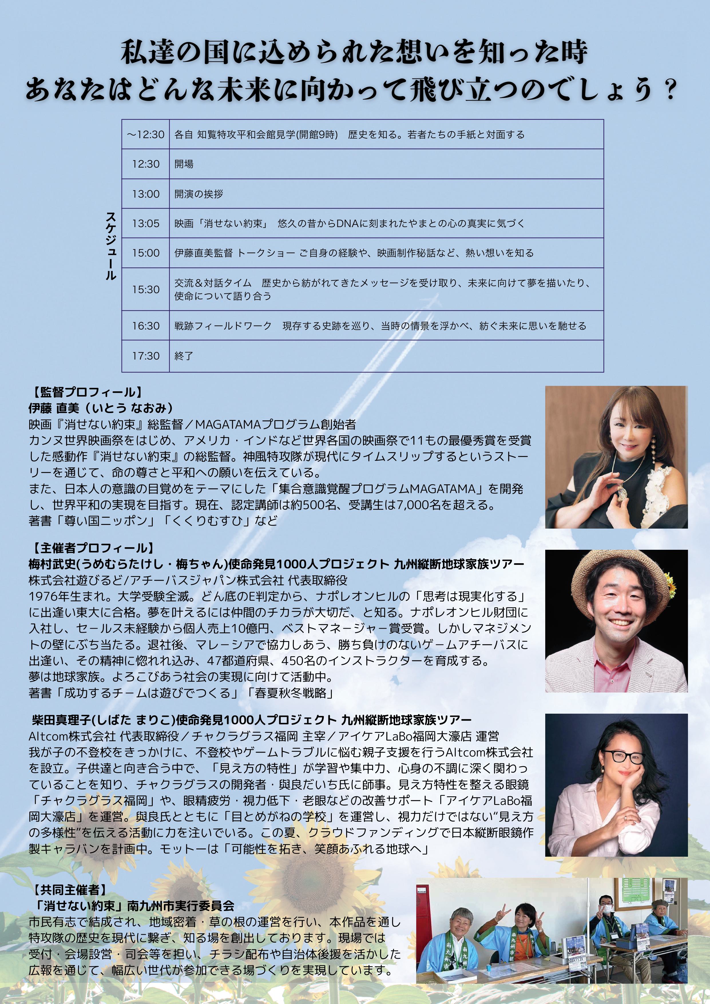 【問い合わせ先】「消せない約束」南九州市上映実行委員会 0993-58-7577(南九州市観光協会内)