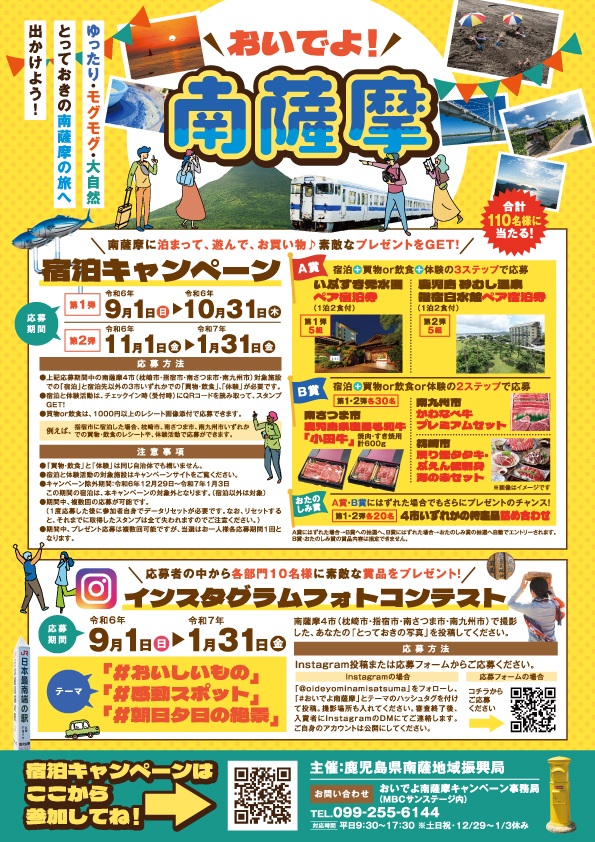 | おいでよ!南薩摩「宿泊キャンペーン」、「インスタグラムフォトコンテスト」を実施しています! |