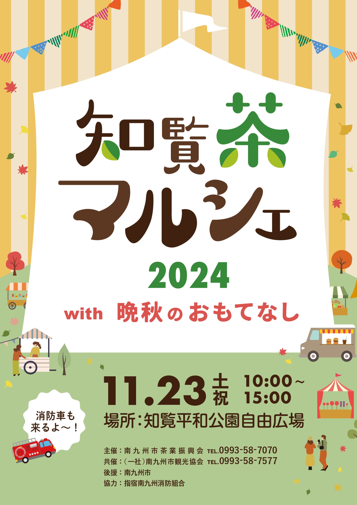 11月23日(土・祝)、知覧平和公園にて「南九州市へおいでよ!知覧茶マルシェ2024with晩秋のおもてなし」を開催します。