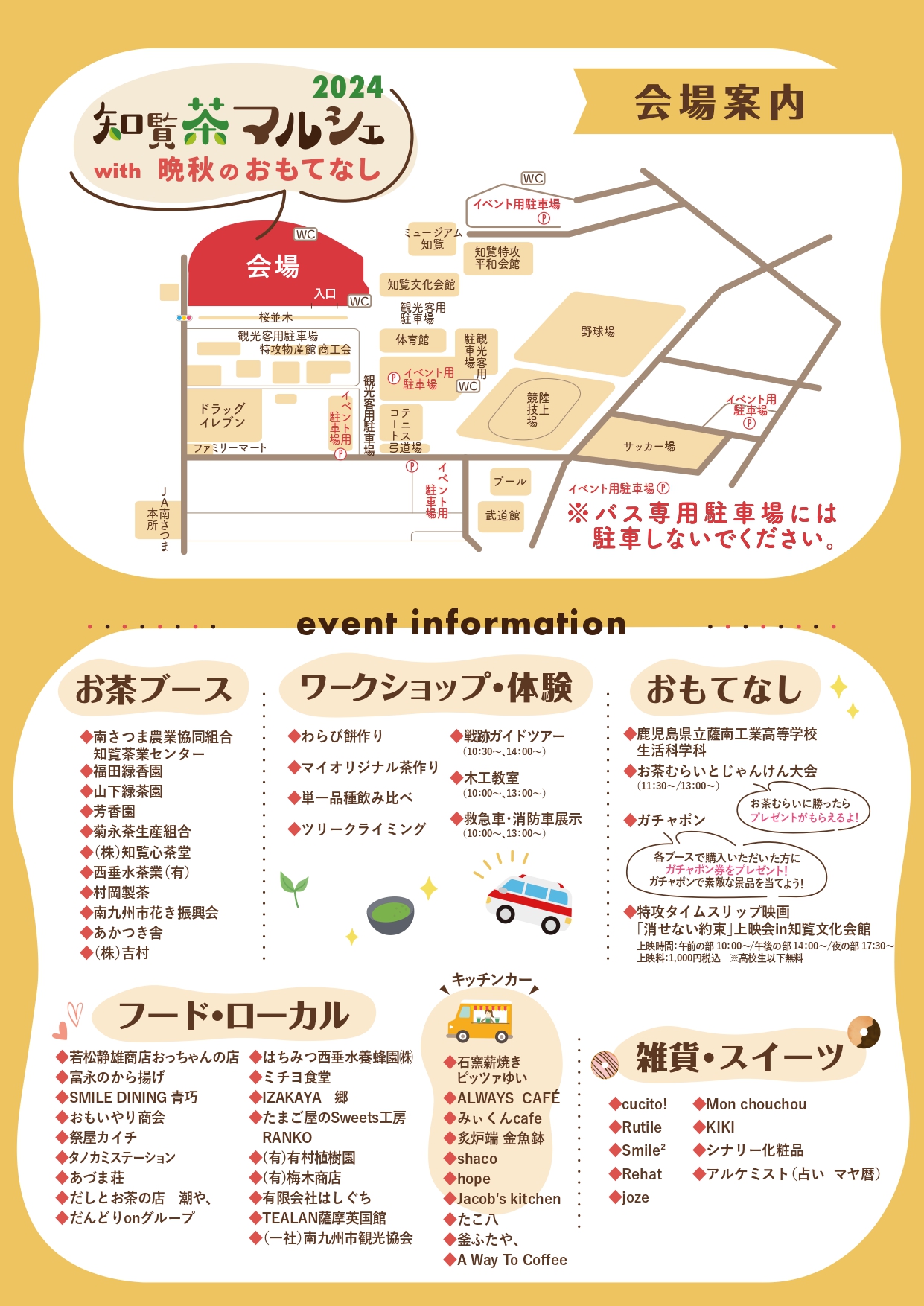〇開催内容 ①観光PR&物販(お茶・特産品・ワークショップ・雑貨・ハンドメイド 等)
