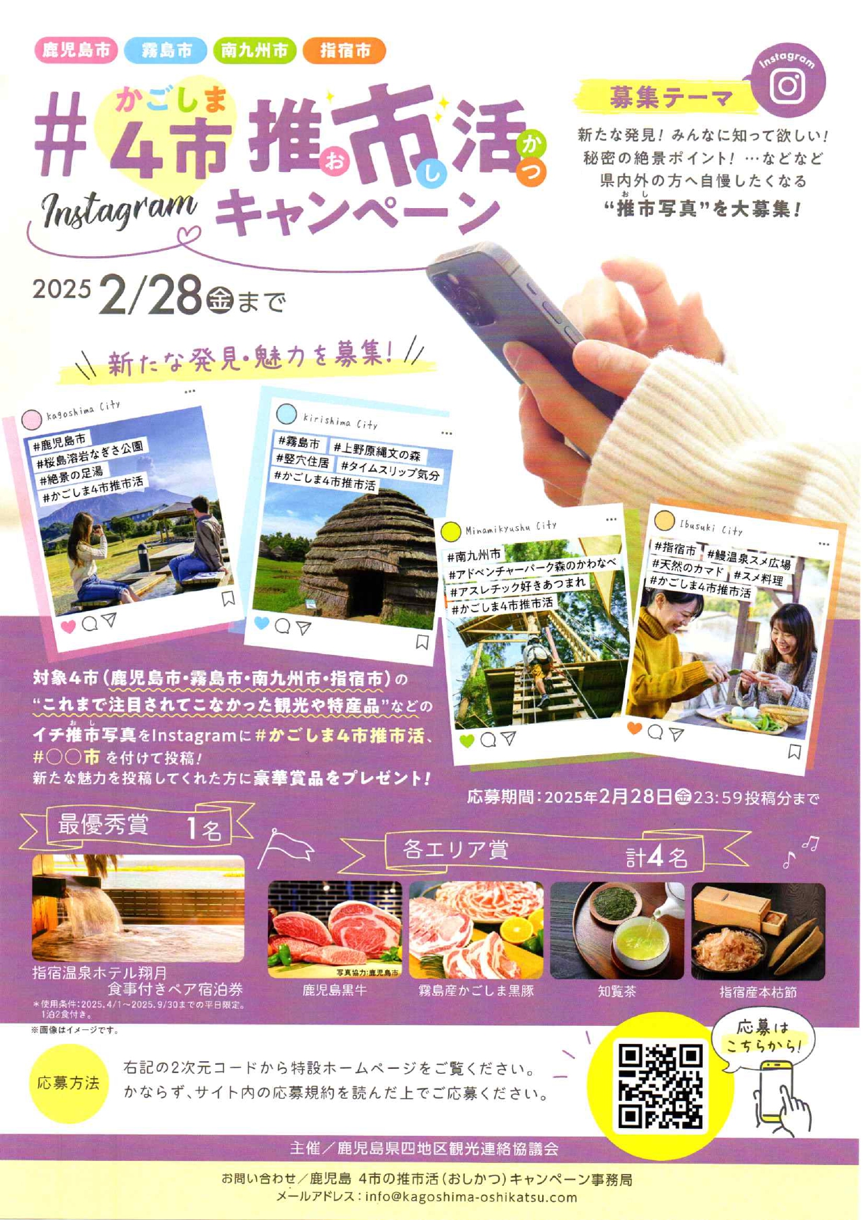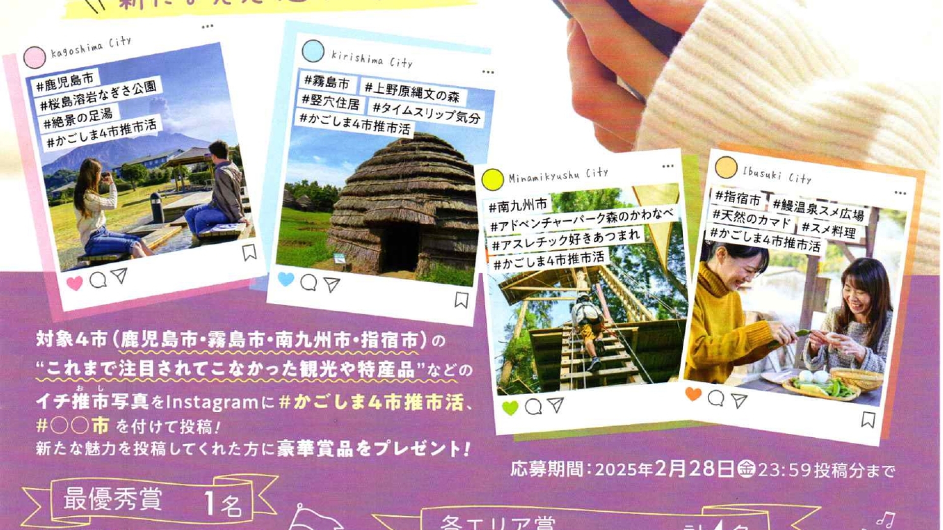 観光や特産品”などのイチ推市写真をInstagramに#かごしま4市推市活 #〇〇市 を付けて投稿!