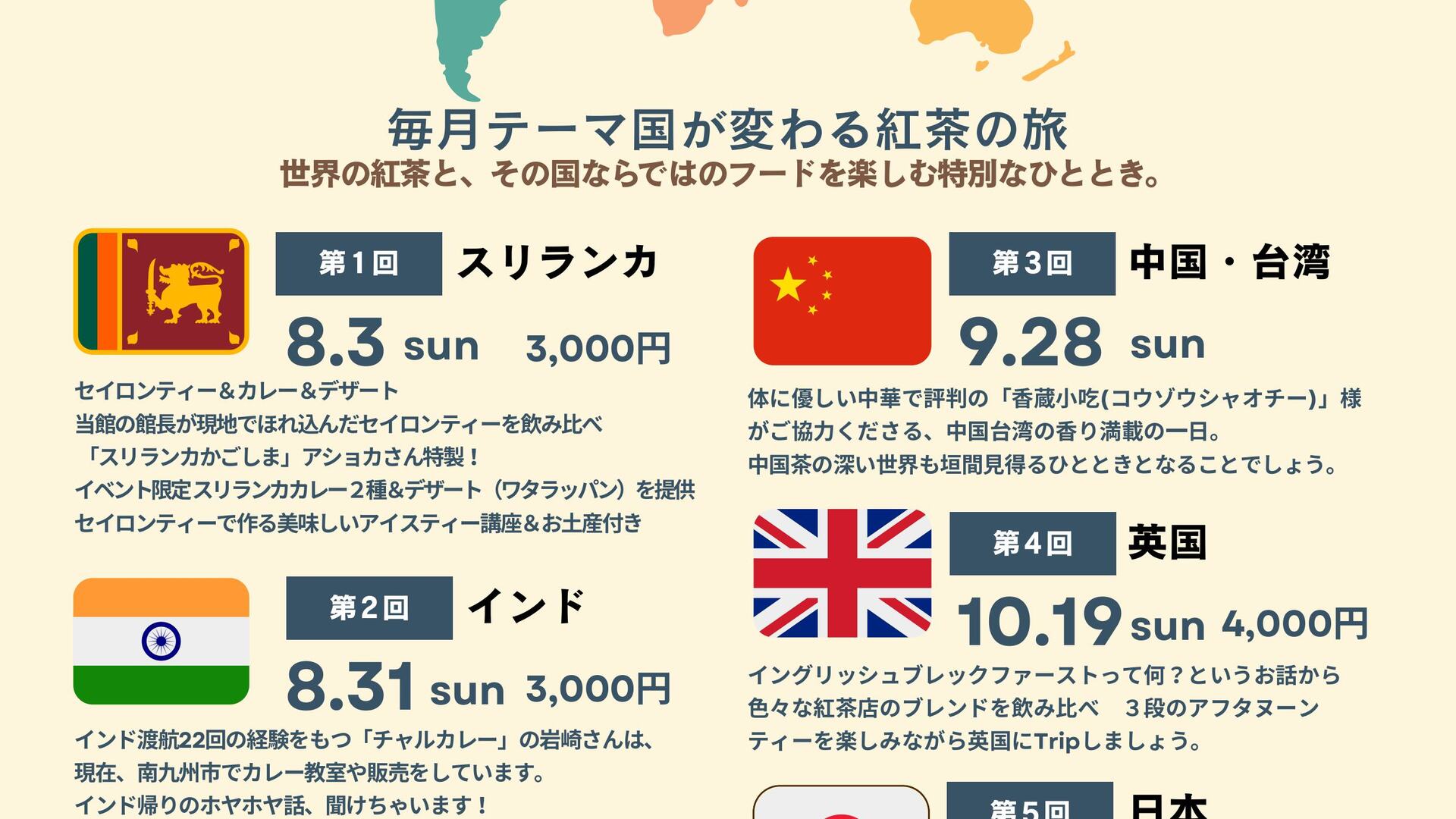 毎月テーマ国が変わる紅茶の旅「紅茶万博2025」。世界の紅茶とその国ならではのフードを楽しむ特別なひとときを感じませんか。