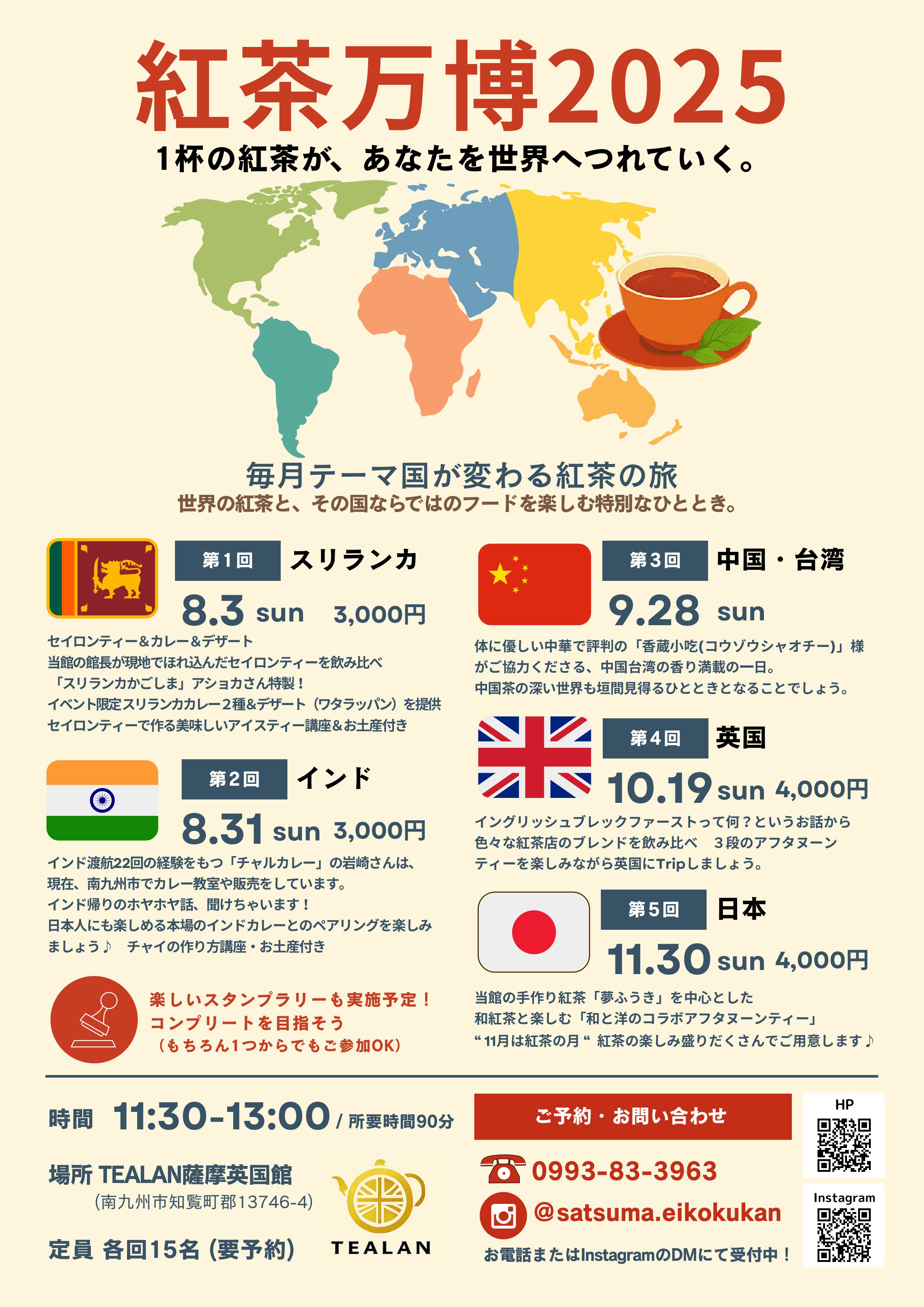 お問合せ先:TEALAN薩摩英国館 ☎0993-83-3963