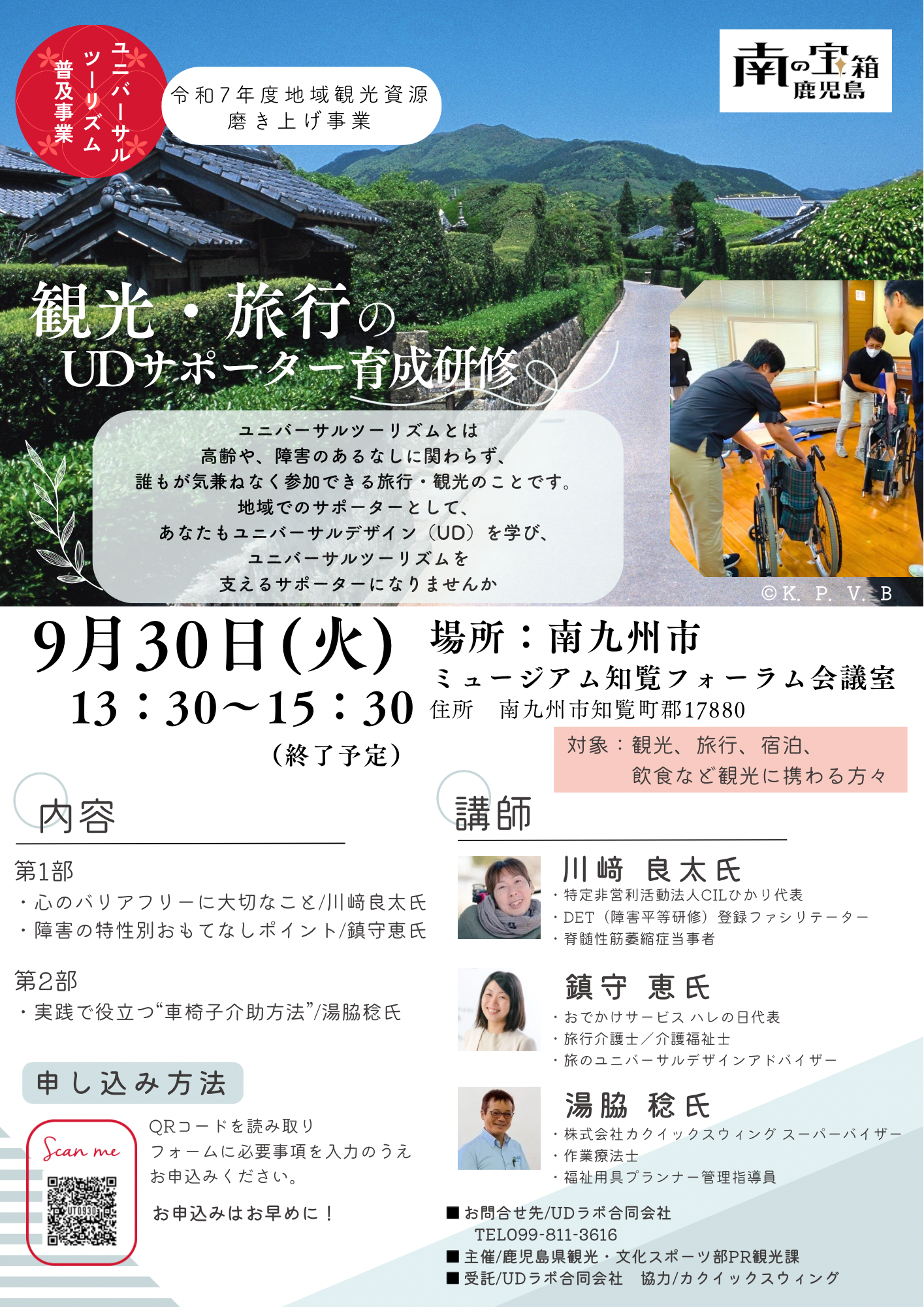 鹿児島県観光・文化スポーツ部PR観光課が主催となり、UDサポーター育成研修を開催いたします。