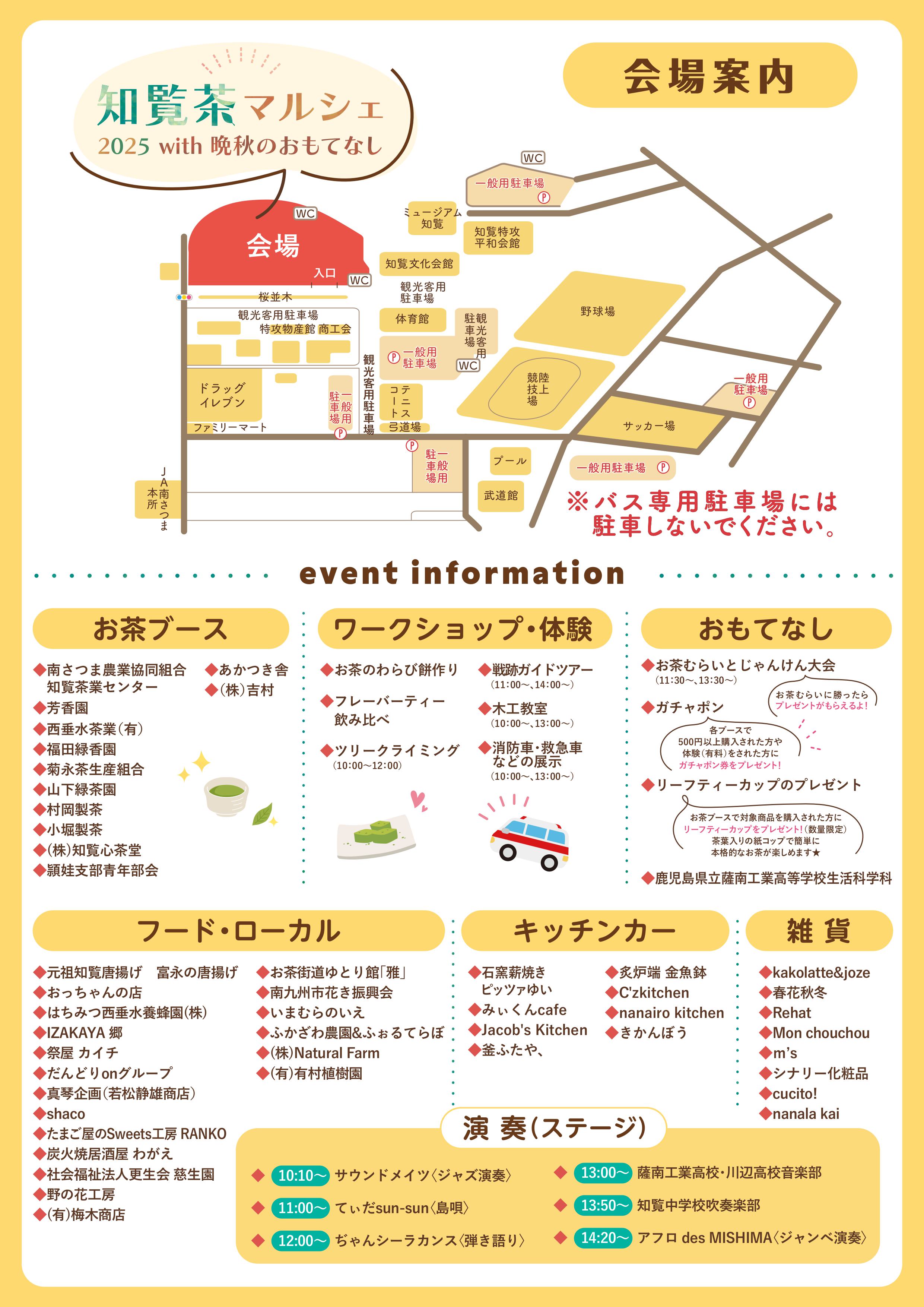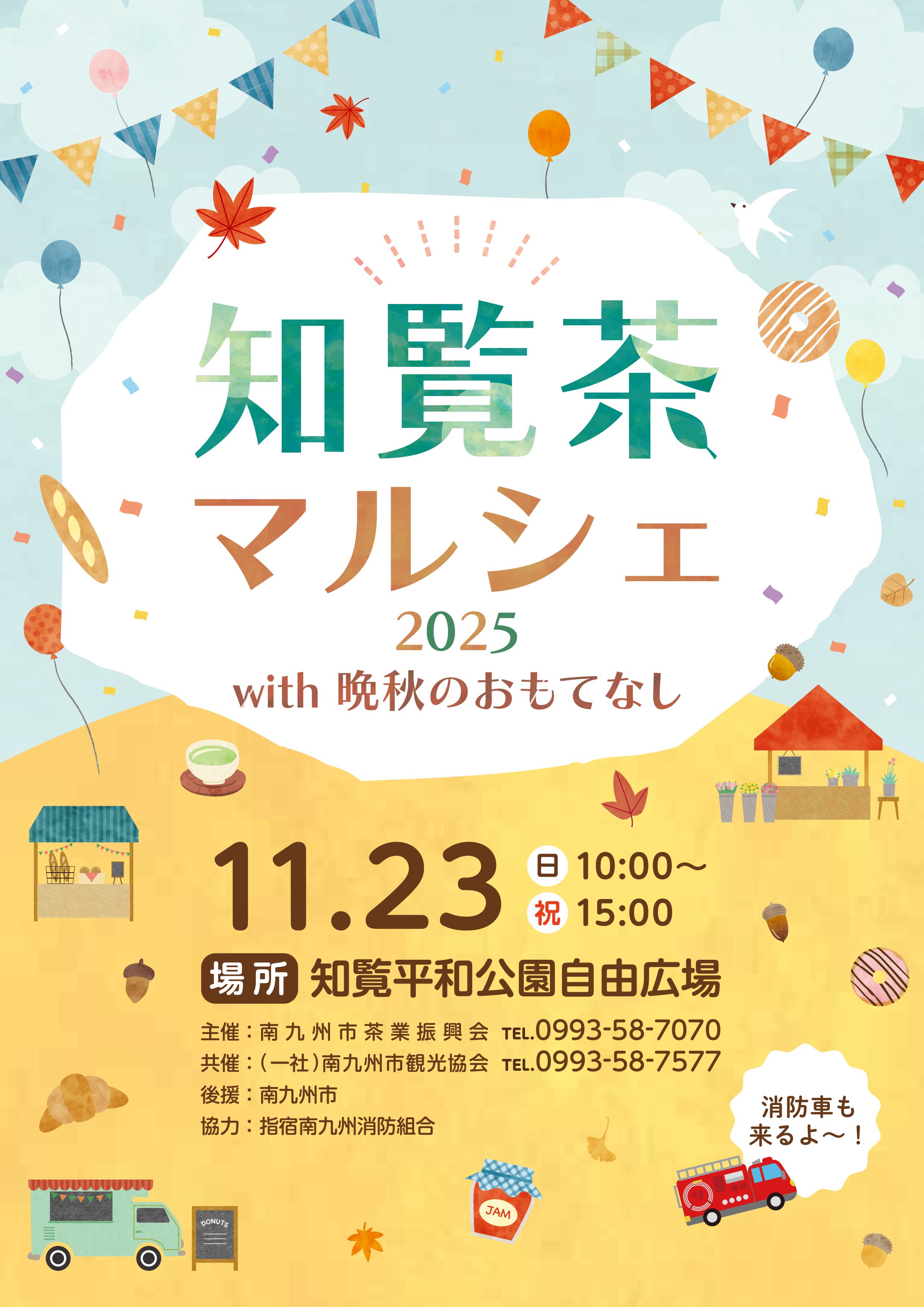 11月23日(日・祝)、知覧平和公園にて「南九州市へおいでよ!知覧茶マルシェ2025with晩秋のおもてなし」を開催します。
