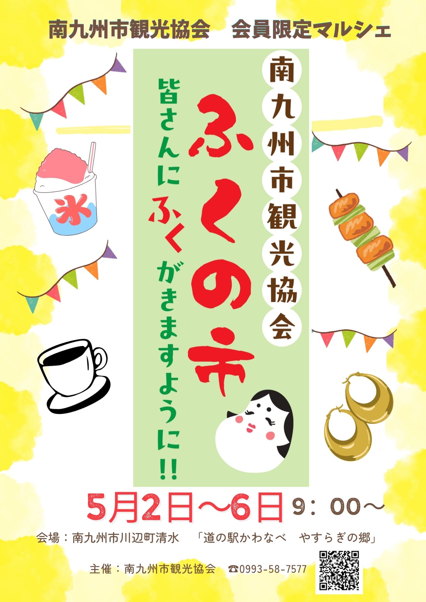 5月2日~5月6日、南九州市川辺町にある「道の駅かわなべ やすらぎの郷」で当協会主催の「ふくの市」マルシェを開催します。