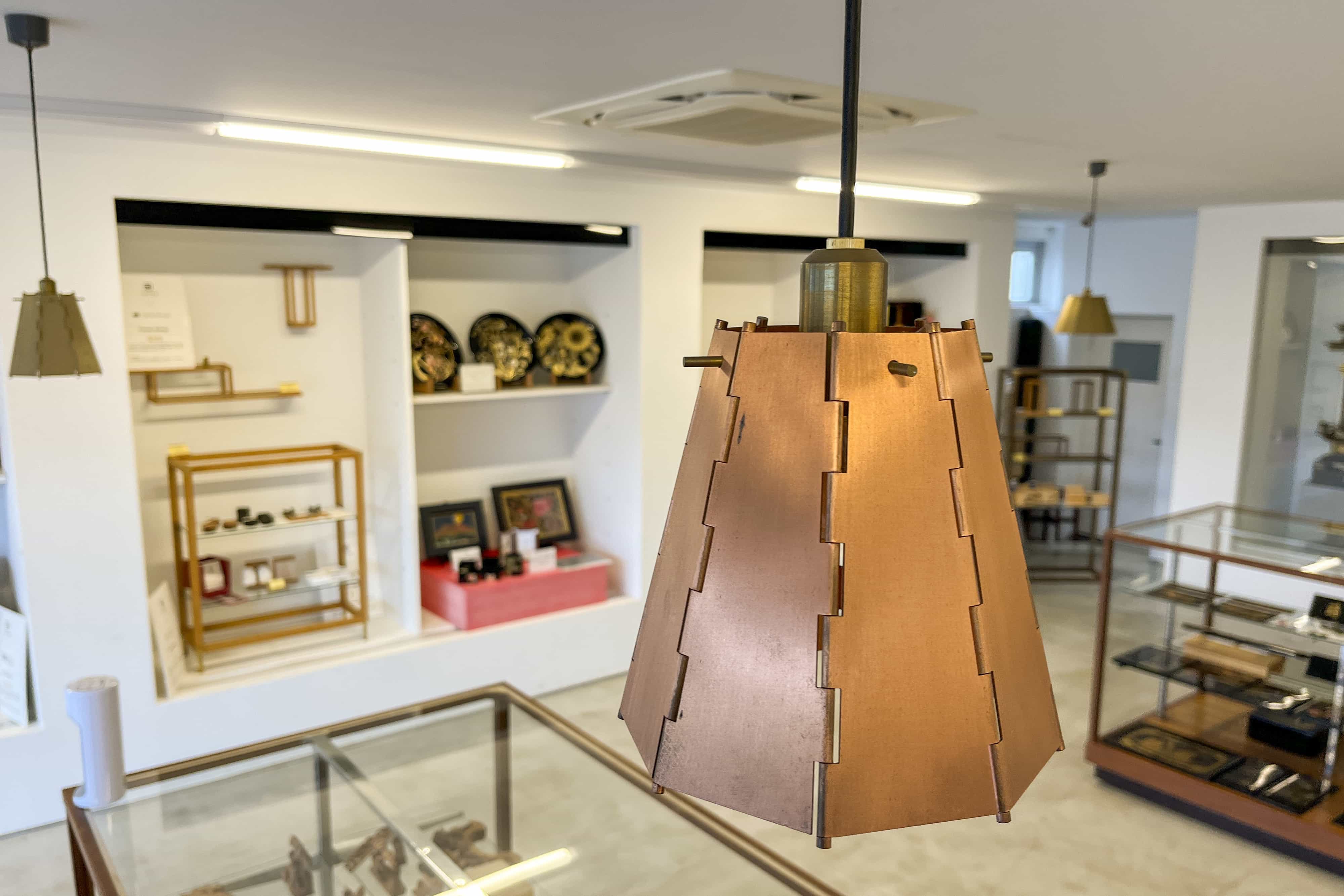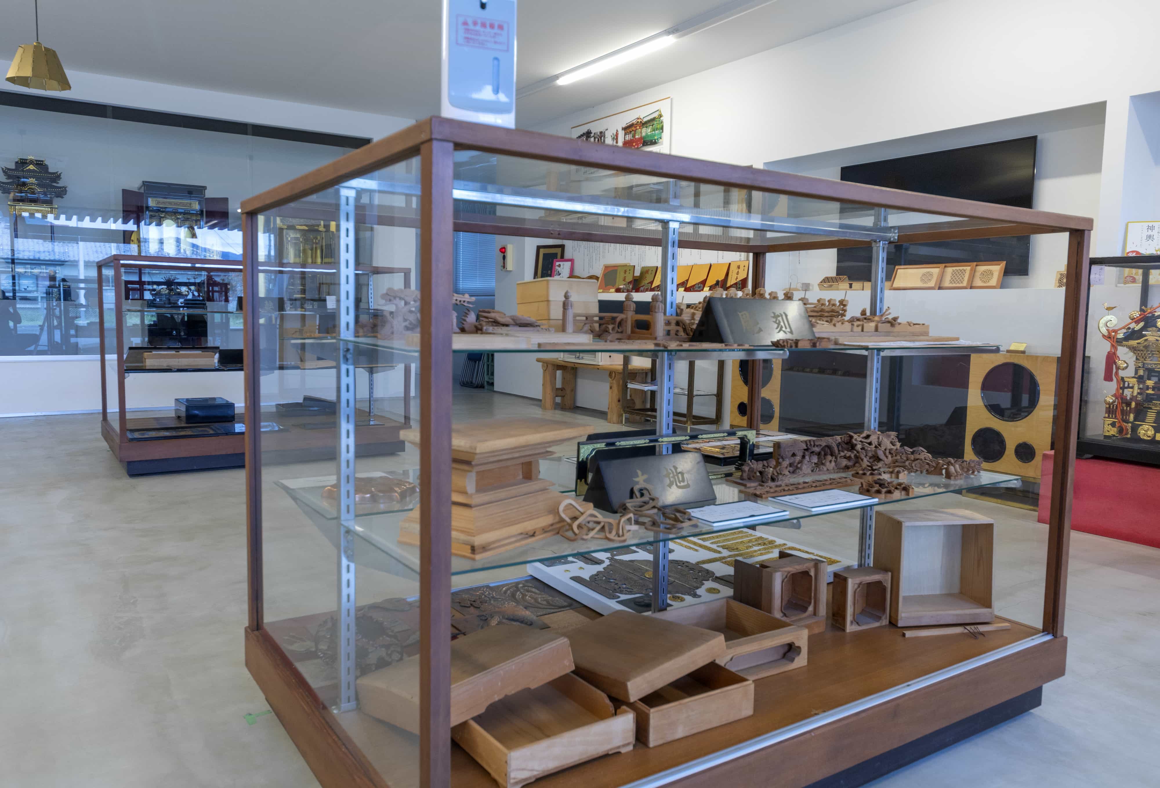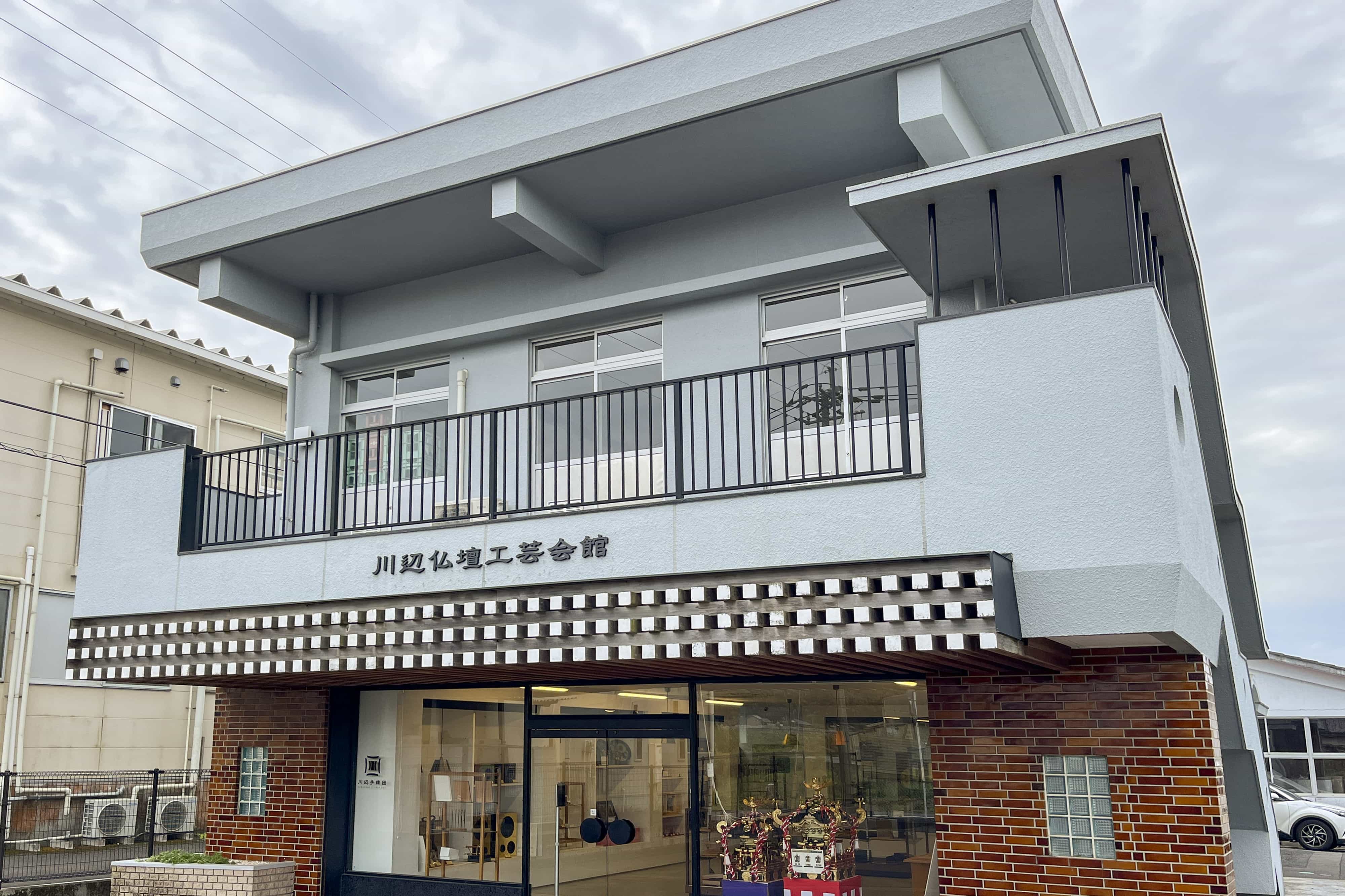 「川辺仏壇工芸会館」 仏壇の技術を駆使して製作した工芸品、仏壇の展示をしております。 当組合では、伝統工芸品ものづくり体験を実施しております。 内容は、螺鈿アクセサリー体験、蒔絵たいけん、彫金風鈴体験、箔押し体験等があり、とても好評です。(4名様以上で受け入れております)